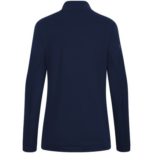 Veste de survêtement Pro Casual Jako Fermeture éclair avec marquage JAKO Poches latérale avec fermeture éclair invisible Poches latérales Les fibres microfines évacuent directement l'humidité à la surface du tissu Le matériau sèche très rapidement, protège du refroidissement et préserve une agréable sensation corporelle pendant le sport Coloris : Bleu foncé