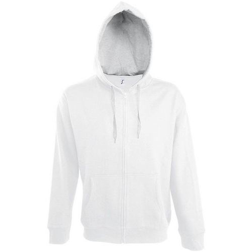 Veste zippée à capuche 50% coton / 50% polyester avec intérieur molleton pour un meilleur confort, finition bas de veste et bas des manches en bord-côte élastique uni , 2 poches kangourou sur le devant, capuche doublée et contrastée avec cordon de serrage contrasté.