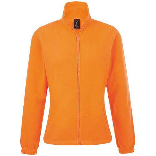 Veste femme micropolaire zippée, de couleur orange fluo, idéale pour rester bien au chaud lors des saisons...