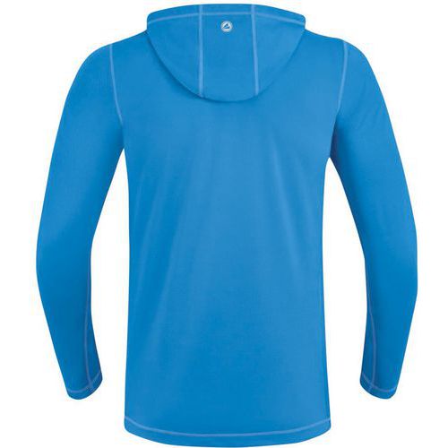 Veste de running à capuche Jako, de couleur bleue, conçue pour la course.