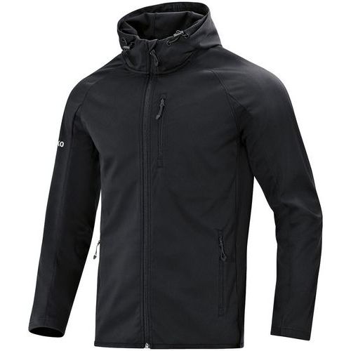 Veste softshell Jako, de couleur noire, parfaite pour rester au chaud et se protéger de la pluie et du vent.
