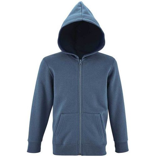 Veste zippée à capuche enfant en polyester et coton, de couleur bleu ardoise, pour rester bien au chaud.