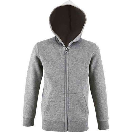Veste zippée à capuche enfant en polyester et coton, de couleur gris chiné, pour rester bien au chaud.