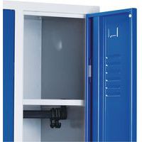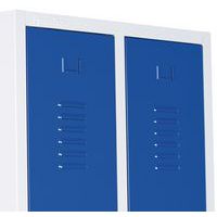 Vestiaire acier robuste à portes renforcées. Ouverture optimale à 180° et charnières invisibles. Hygiénique avec une aération haute et basse des portes. Perforations pour accroche murale, porte-étiquette embouti.