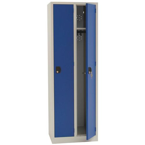 Vestiaire silencieux avec porte à butées plastique. Compartiment penderie équipé d'accessoires. Sécurité optimale avec tous les coins arrondis. Hygiénique : fente d’aération en fond de casier. Conseils de sécurité : - installer le meuble sur une surface plane - le fixer sur un mur ou une cloison avec une fixation adaptée - veiller à ne pas dépasser la charge maximum conseillée, ainsi qu’à sa bonne répartition