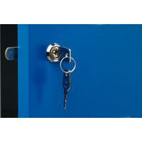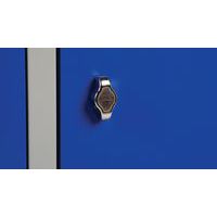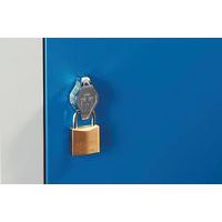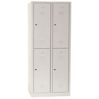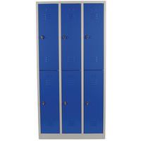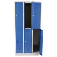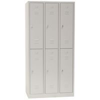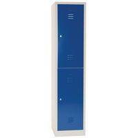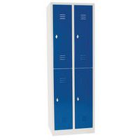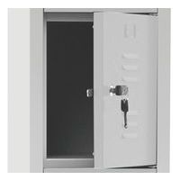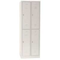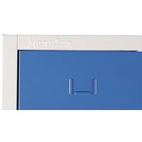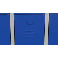 Vestiaire sur socle avec butées antibruit. Avec perforations pour accroche murale. Aération haute et basse sur la face avant. Portes renforcées avec charnières invisibles. Belle finition avec porte-étiquettes emboutis.