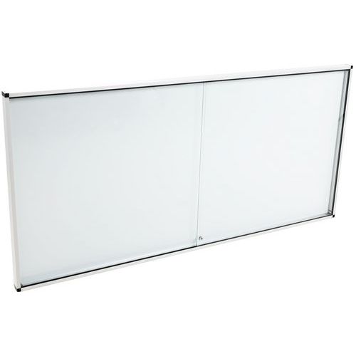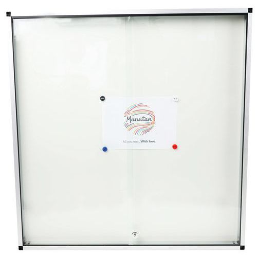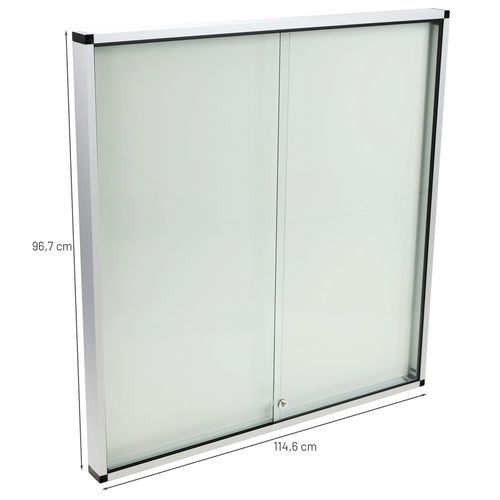 Vitrine d'affichage intérieur robuste, sûre et légère. Surface magnétique en acier laqué pour l'affichage de vos documents par plots magnétiques. Porte coulissante verrouillable transparente offrant une excellente visibilité des affichages du matériel affiché. Vitrine en verre renforcé 5 mm d'épaisseur pour plus de sécurité. Verrouillable et fournie avec 2 clés.