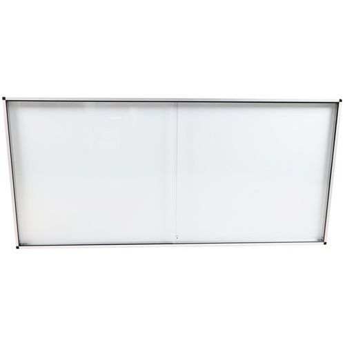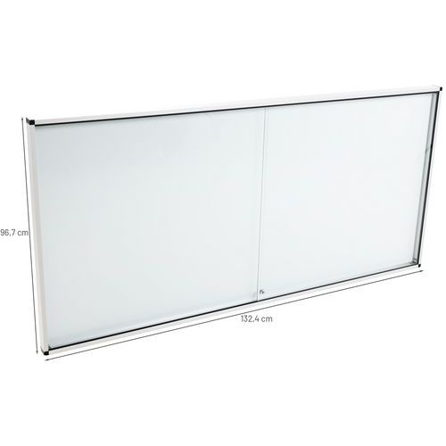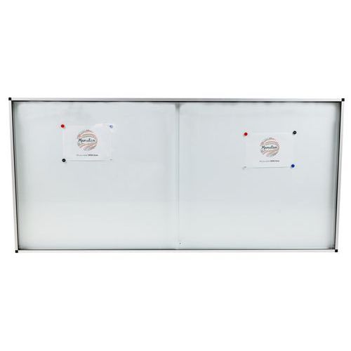 Vitrine d'affichage intérieur robuste, sûre et légère. Surface magnétique en acier laqué pour l'affichage de vos documents par plots magnétiques. Porte coulissante verrouillable transparente offrant une excellente visibilité des affichages du matériel affiché. Vitrine en verre renforcé 5 mm d'épaisseur pour plus de sécurité. Verrouillable et fournie avec 2 clés.
