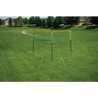 Le kit comprend : 1 filet, des bandes de délimitations spéciales TriBall, 1 balle de volley Soft Touch avec pompe à main et 1 sac de transport.