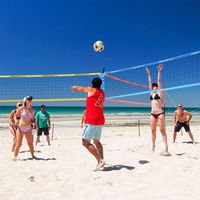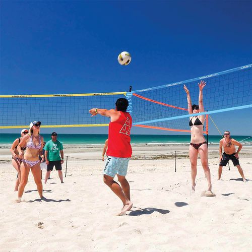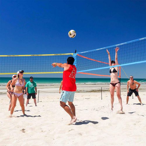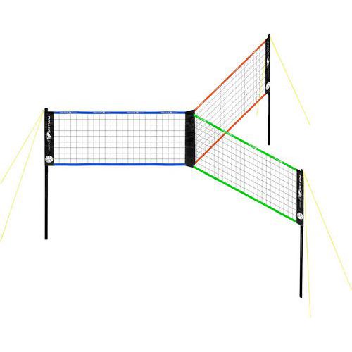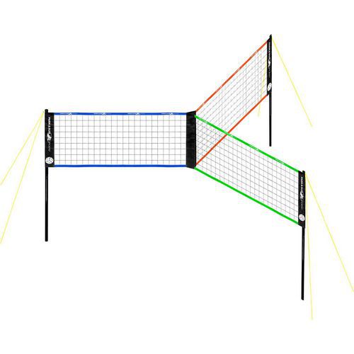 Grâce au filet triple de volley-ball, vous pouvez intégrer des joueurs supplémentaires à la partie (de 1 à 3 joueurs par filet), augmenter la distance entre ceux-ci, créer de nouvelles règles palpitantes et vivre des expériences sportives inoubliables.